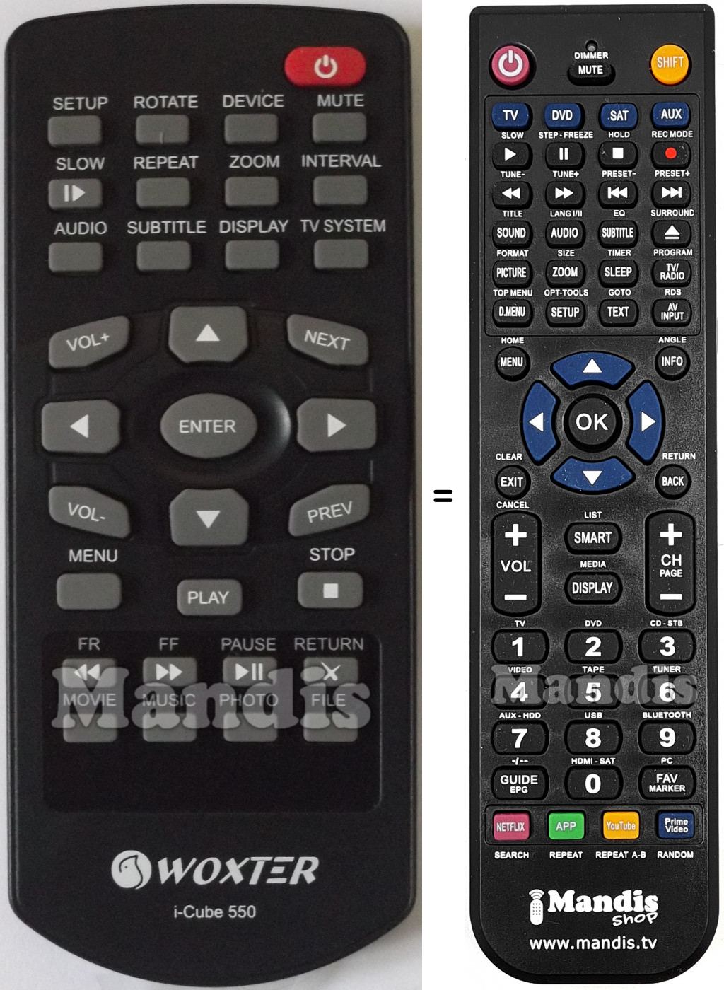 Questo telecomando sostituisce completamente il tuo ICube550 e offre tutte le funzioni dell'originale.