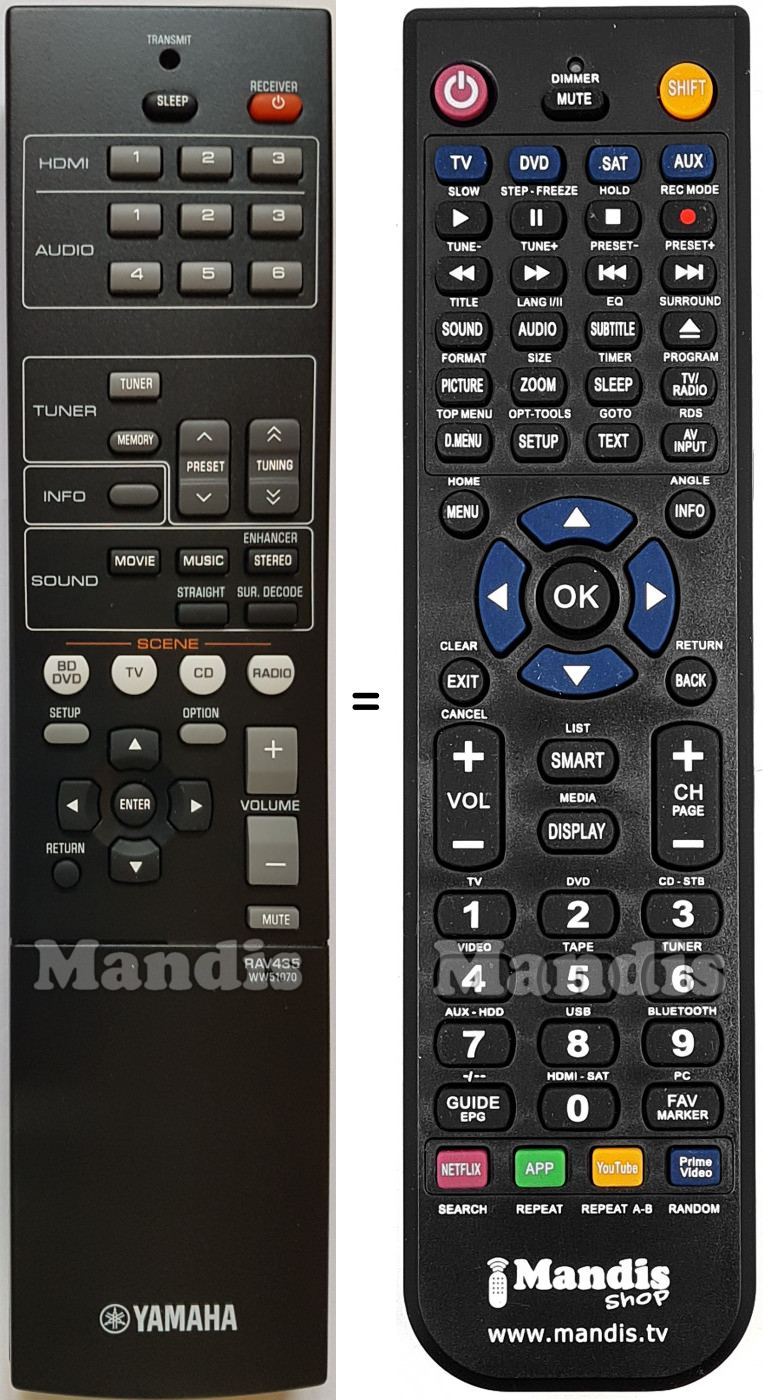 Questo telecomando sostituisce completamente il tuo RAV435 (WW510700) e offre tutte le funzioni dell'originale.