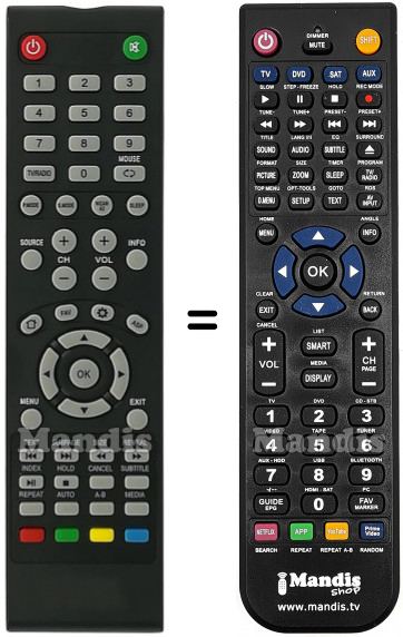 Di seguito, vi mostreremo la corrispondenza tra ciascun pulsante del telecomando originale e il pulsante che svolge la stessa funzione sul telecomando di sostituzione. In alcuni casi, potrebbe essere necessario premere il tasto SHIFT prima di premere un altro pulsante per eseguire determinate azioni. Queste funzioni aggiuntive sono spesso poco utilizzate e sono incluse per facilitare la comprensione del telecomando di sostituzione, o perché il telecomando originale ha più pulsanti rispetto al suo equivalente.